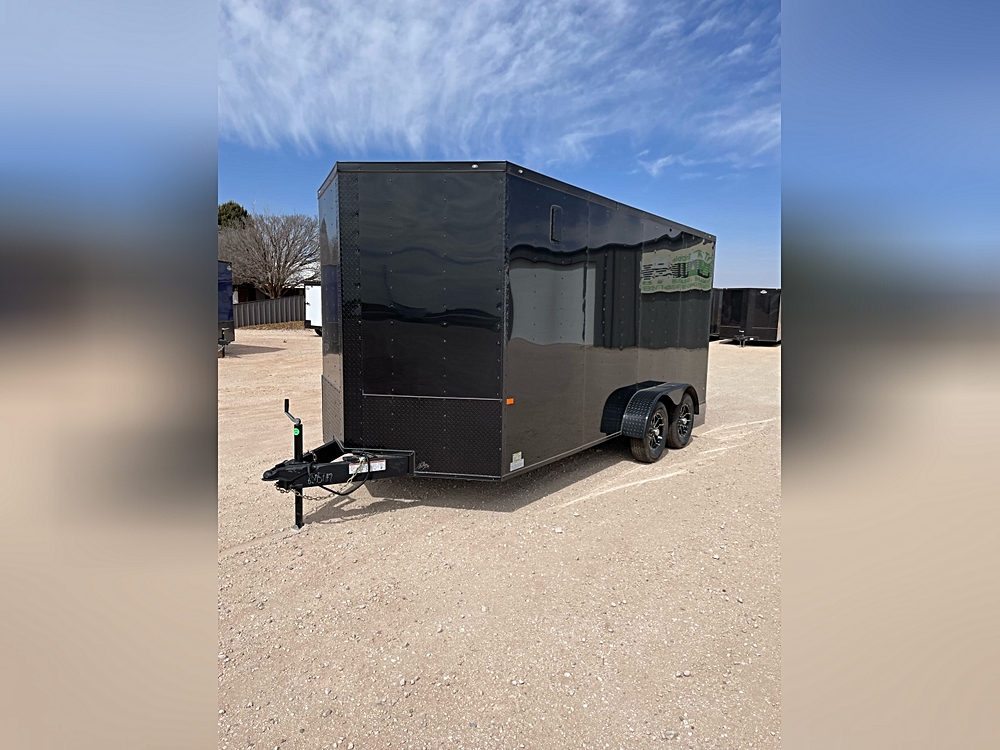 The 7 x 16 x 7 offers several customization options. You can opt for floor mount D-rings for secure transport, upgrade to 15″ radial aluminum mag wheels, and choose dual LED tail lights for enhanced safety. The exterior features a Black Out Special with .080 Polycore Black, adding to its sleek, modern look.